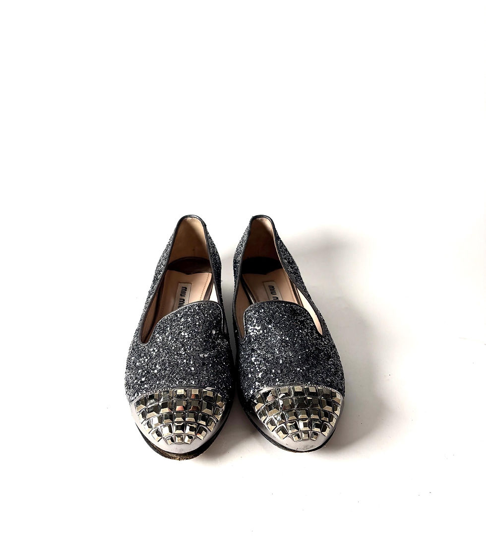 Vintage Miu Miu Glitter Loafers Mirror Cap Toe
