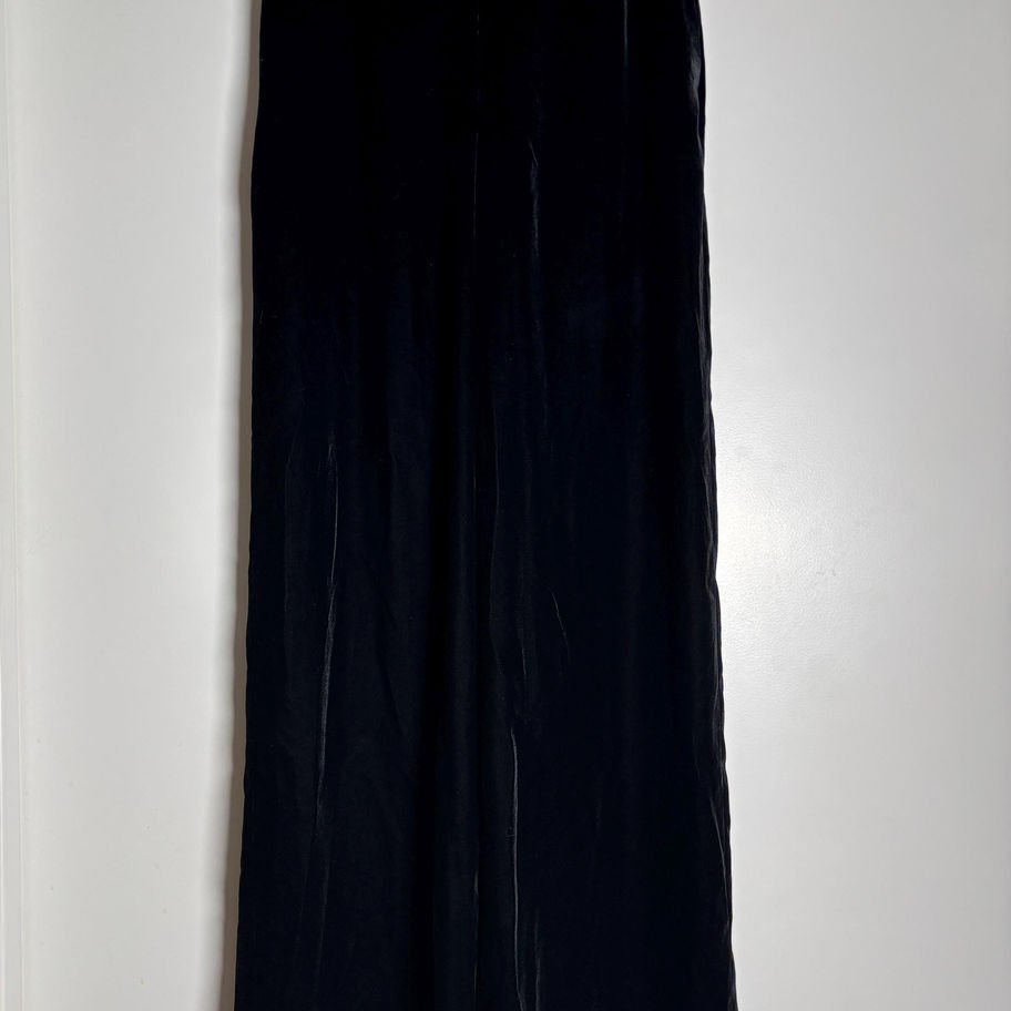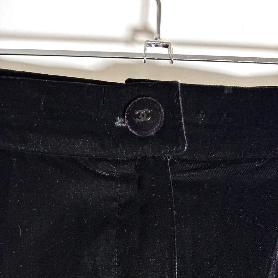 Step into timeless elegance with these vintage Chanel wide-leg velvet trousers, a rare and covetable piece from the fashion house's era of 90s minimalist refinement. Designed in rich black velvet, these pants feature a fluid wide-leg silhouette that's both dramatic and sophisticated — the perfect base for holiday soirées, editorial winter dressing, or quiet luxury looks. Crafted with the exceptional quality and attention to detail that defines vintage Chanel, these trousers are a wearable piece of fashion history. ✨ Style tip: Pair with a silk blouse and heels for a holiday party or layer with a vintage blazer and loafers for a Parisian street style edge. From the Fall 1998 collection by Karl Lagerfeld, as seen on Naomi Campbell. Dandy core at its finest. 🧵 Details: Authentic vintage Chanel Black velvet, wide-leg silhouette High waist Zip closure Made in France Era: Fall 1998 designed by Karl Lagerfeld. As seen on Naomi Campbell. 📏 Size: France 36, fits like a US 0/2 📐 Measurements: Waist: 10.5 inches Inseam: 24 inches 🧼 Condition: Excellent vintage condition. No visible flaws. 100% authentic. *All my items have been steam cleaned vintage chanel pants chanel velvet trousers chanel wide leg pants 90s designer fashion quiet luxury vintage holiday party pants coquettecore black velvet french fashion vintage editorial vintage look authentic chanel clothing runway ready vintage minimalist luxury style