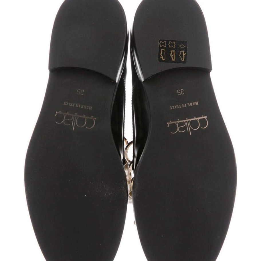 Bold femininity meets architectural edge. These Coliac loafers are crafted in smooth black leather and dramatically embellished with oversized pearl studs and gold-tone interlocking rings across the vamp. The sculptural hardware and mixed pearl sizing give them a couture-adjacent feel. Equal parts playful and powerful — these are not subtle shoes. They are conversation pieces. Style with: • Tailored trousers for editorial contrast • A slip dress for high-low drama • Structured blazer and bare ankle Made in Italy with the craftsmanship Coliac is known for — modern, irreverent, fashion-forward. Details: • Brand: Coliac • Made in Italy • Black leather upper • Faux pearl embellishments • Gold-tone hardware rings • Slip-on loafer style • Leather lining • Size: EU 35 • Condition: Almost pristine coliac loafers, pearl embellished shoes, italian designer flats, statement black loafers, avant garde shoes, fashion editor shoes, embellished leather flats, gold hardware loafers, luxury statement shoes, coquette pearl shoes, designer fashion loafers, runway style shoes, unique designer footwear